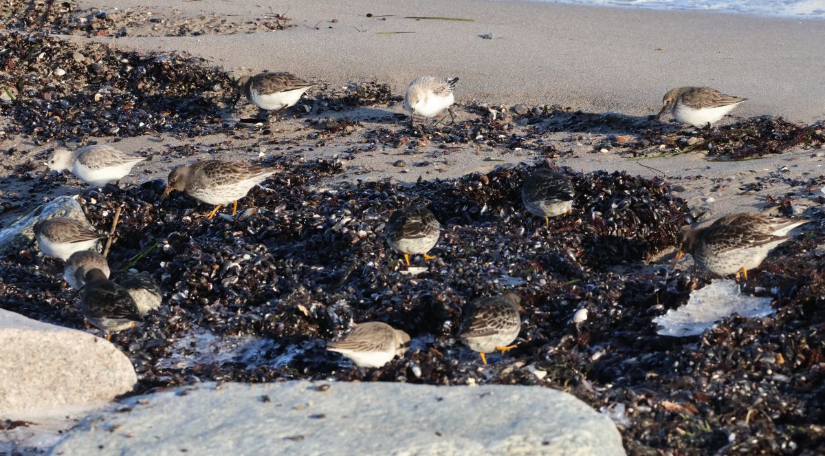 Jeg kunne tælle omkring 30 Almindelige Ryler, 2 Sandløbere og 12 Sortgrå Ryler. Det var en glædelig overraskelse, og jeg stod noget tid og hyggede mig med de tillidsfulde, charmerende vadere.