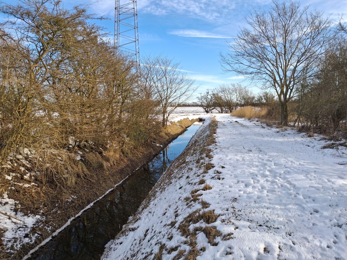 Efter godt en halv time med gæssene, kørte jeg til shelter-området i Gedser (kaldet ‘Frisenfelt og kanalerne’ i DOFbasen). Målet var kanalen i området, hvor der før er set Enkeltbekkasin og Isfugl. Jeg gik en tur langs kanalen og fandt en Krikand og en Rørhøne, men intet mere usædvanligt.