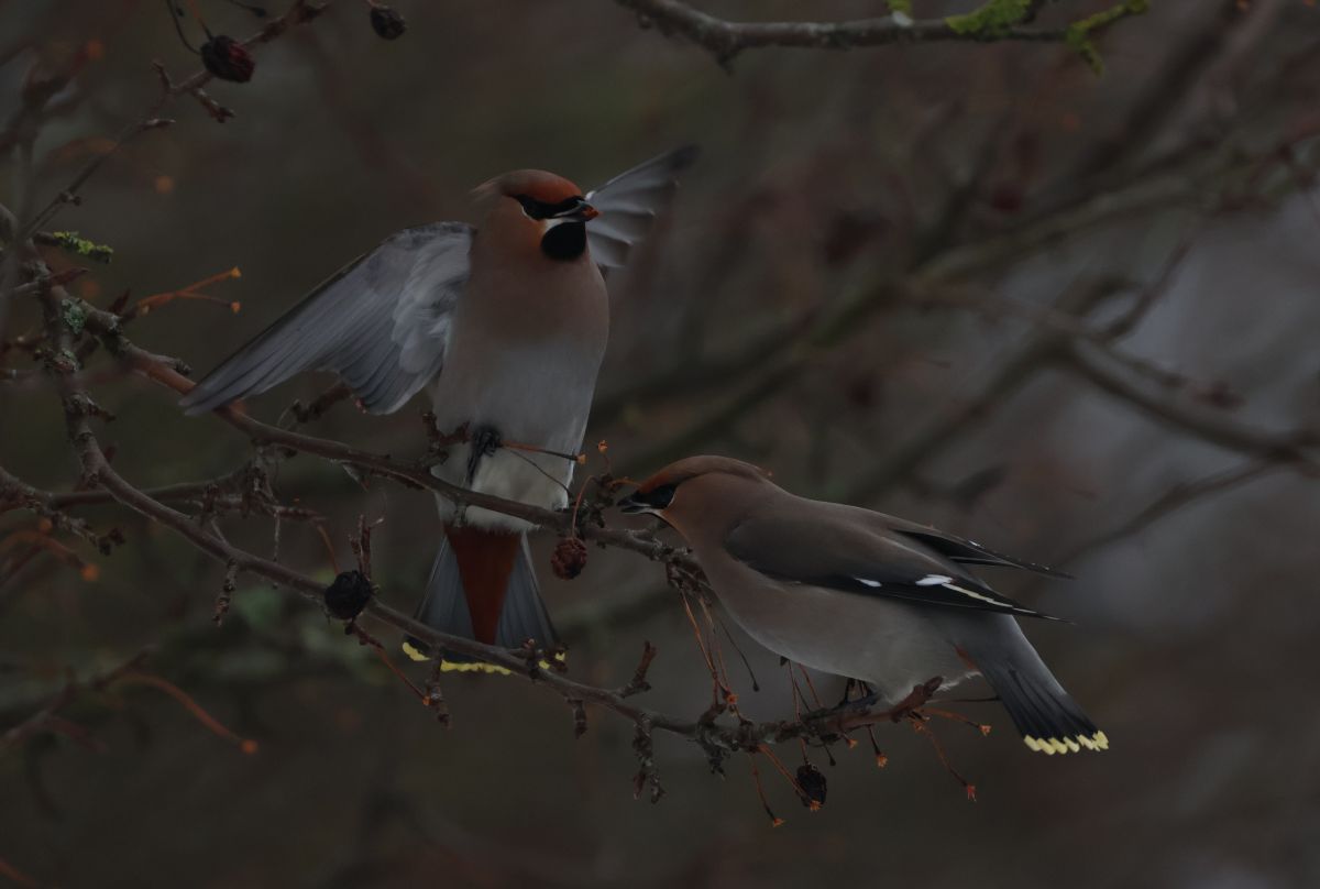 Siden jul har der holdt en større flok Silkehaler til i området omkring mit arbejde, så de dage det har været muligt, har jeg haft kameraet med på arbejde og gået en tur i frokostpausen. Især i en boligblok har jeg fundet en del frugtædende fugle, som især lader til at fouragere på en form for paradisæble. Området er fuld af Sjaggere krydret med enkelte Vindrosler, og med tanke på den Brundrossel, der stadig huserer på Amager, har jeg sørget for at tjekke alle de mindre drosler med øjenbrynstribe ud. Silkehalerne har jeg også set og hørt en del til, og en enkelt gang er det lykkedes mig at finde dem i en højde, hvor det var muligt at få nogle fine billeder af dem. Det er bare en lækker fugl, og hold op, hvor er der bare mange i Danmark i år!