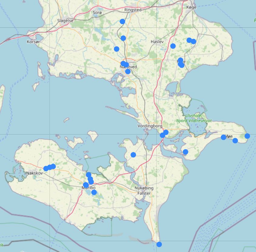 Især på Falster er Vandstær svær at finde. Nedenstående kort viser de sidste 5 års observationer af arten i lokalafdelingen.